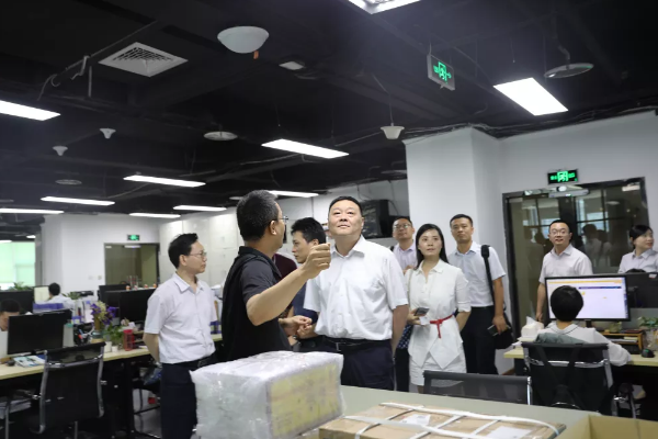 黄书凯先生及王强先生带领领导们参观了强大集团办公环境,向贵宾们介绍了强大集团的荣誉资质、企业文化以及部门分布情况,集团的荣誉墙和合作伙人墙引起了贵宾们的关注。