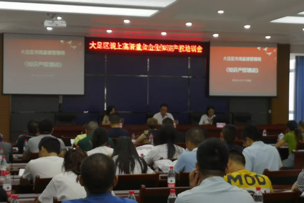 8月1日,“大足区规上高新重点企业知识产权培训会”顺利召开。本次培训会,由大足区市场监管局张文川局长亲自主持,市场监管局工作人员及高新技术企业代表参会,强大知识产权集团知识产权专家鞠小燕女士、范淑萍女士在会上做了专业的分享。