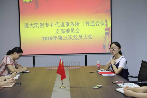 8月9日,中共重庆强大凯创专利代理事务所(普通合伙)支部委员会2019年第三次党员大会在强大知识产权集团5楼1会议室圆满召开,支部全体党员参加了此次会议。公司党支部书记李静同志主持会议。