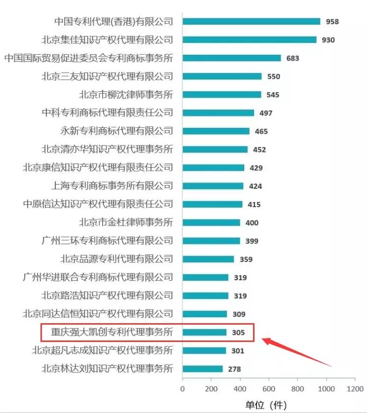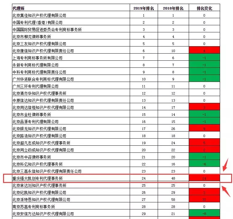 在2019年,重庆强大凯创专利代理事务所已经有5次进入前50强榜单。另外4次分别是:
