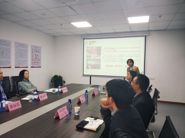 范淑萍女士向领导们展示了强大知识产权集团的基本情况、业绩成果及管理运营模式、人才培养、服务理念等。