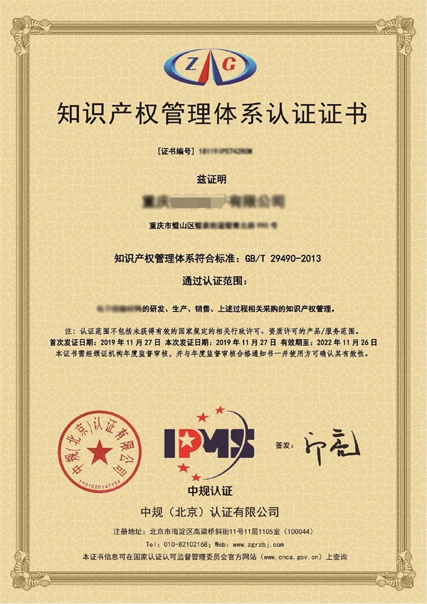 继我司辅导的两江新区企业获得知识产权管理认证证书后,近日,我司辅导的一家璧山区企业也传来喜讯——已成功获得知识产权管理体系认证证书!