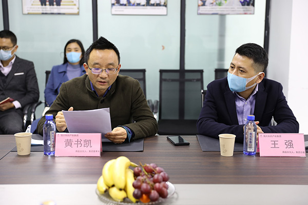 会上,董事长黄书凯代表集团全体员工对领导的到来表示衷心地欢迎,并就集团在疫情期间的应对情况做了详细汇报:针对疫情下的复工,强大集团专门成立了以董事长、总裁为正副组长的防疫工作领导小组,落实防控责任,制定防控措施,做好防疫物资筹备、员工摸排、办公区消毒、体温检测等工作,按照《企业职工疫情防控操作手册》要求严格执行到位。自复工以来,强大知识产权集团无一例疑似及确认病例。同时针对疫情的实际情况及时反应,迅速调整,采取新方式、新手段积极开展工作,做好云学习、云宣讲、云服务,在自救的同时,也帮助其他企业渡过难关。截止目前,累计完成云学习96场、云宣讲21场、云服务近200场,多场直播引起强烈反响。虽然困难重重,但集团上下团结一致,对未来充满信心。
