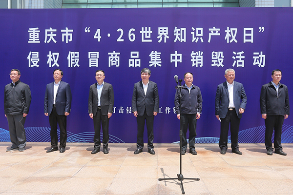重庆市打击侵权假冒工作领导小组办公室举办“‘4.26世界知识产权日’侵权假冒商品集中销毁活动”。