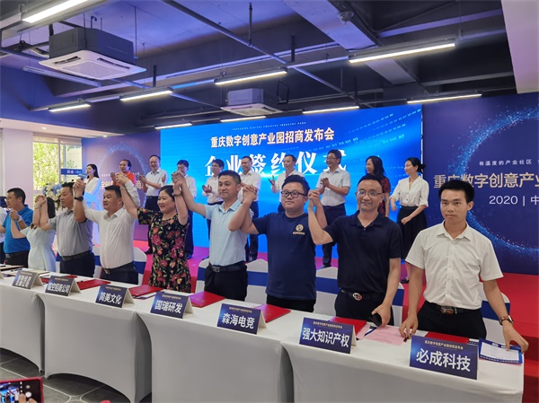 现场,森海电竞、强大知识产权集团等10个入驻园区的数字文化产业项目正式签约。