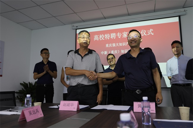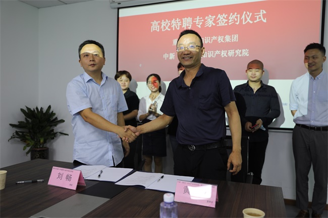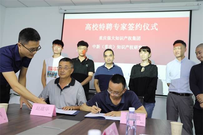 强大知识产权集团、中新(重庆)知识产权研究院与重庆大学教授、重庆交通大学教授正式签订了聘任协议。