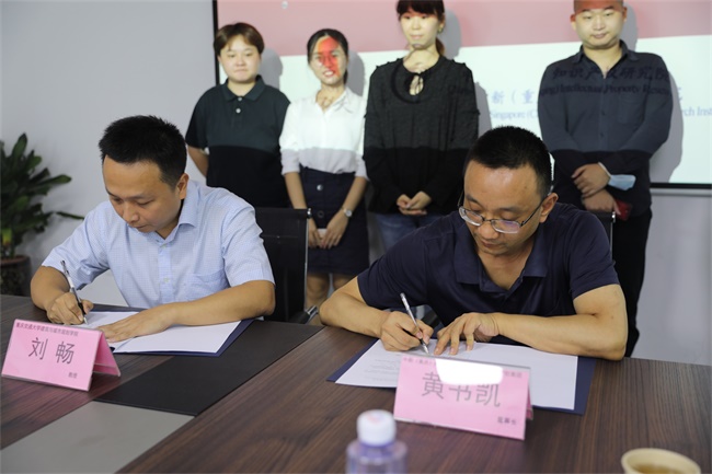 黄书凯董事长与重庆大学赵建华教授签约。