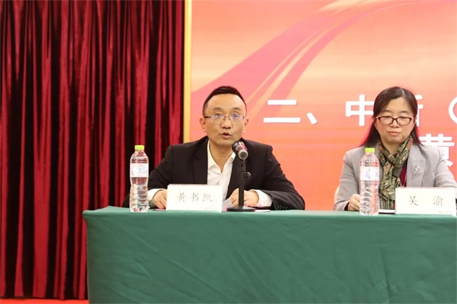 黄书凯董事长代表中新(重庆)知识产权研究院发言,他对研究院做了简要介绍——中新(重庆)知识产权研究院是由重庆强大知识产权集团与新加坡著名专业机构发起,经中国和新加坡两国政府审核批准成立,是致力于创新和知识产权保护研究的专业机构,已获得世界知识产权组织WIPO的技术与创新支持中心TISC建设项目。