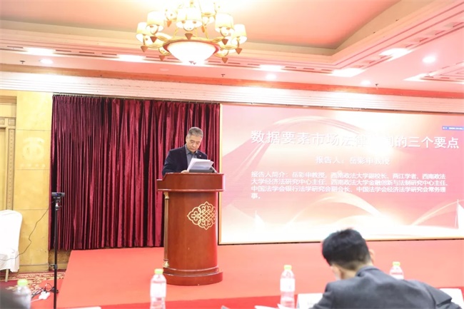 会上,西南政法大学副校长岳彩申教授就“数据要素市场法律规制的三个要点”做了主旨汇报,明确了信息数据及数据权的性质,并对如何细化完善数据产权以及如何建立数据安全审查制度等要点提出了见解。